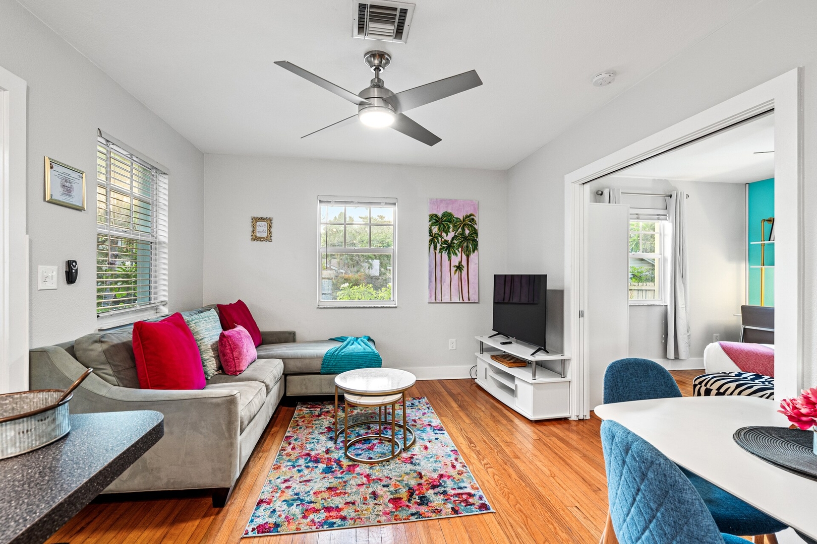 Bliss Villas is named after the definition of Bliss - "Reach a state of happiness, oblivious of everything else." That's what we wish for your stay with us! Highlights include a gated resort-style heated pool, tropical courtyard for lounging and BBQ, a 1.5-mile stroll to the beach, and a one-block walk to downtown restaurants, theatre, shops and nightlife. The pool and courtyard are shared amongst the guests of 4 cottages. All 4 cottages are available for large group bookings.