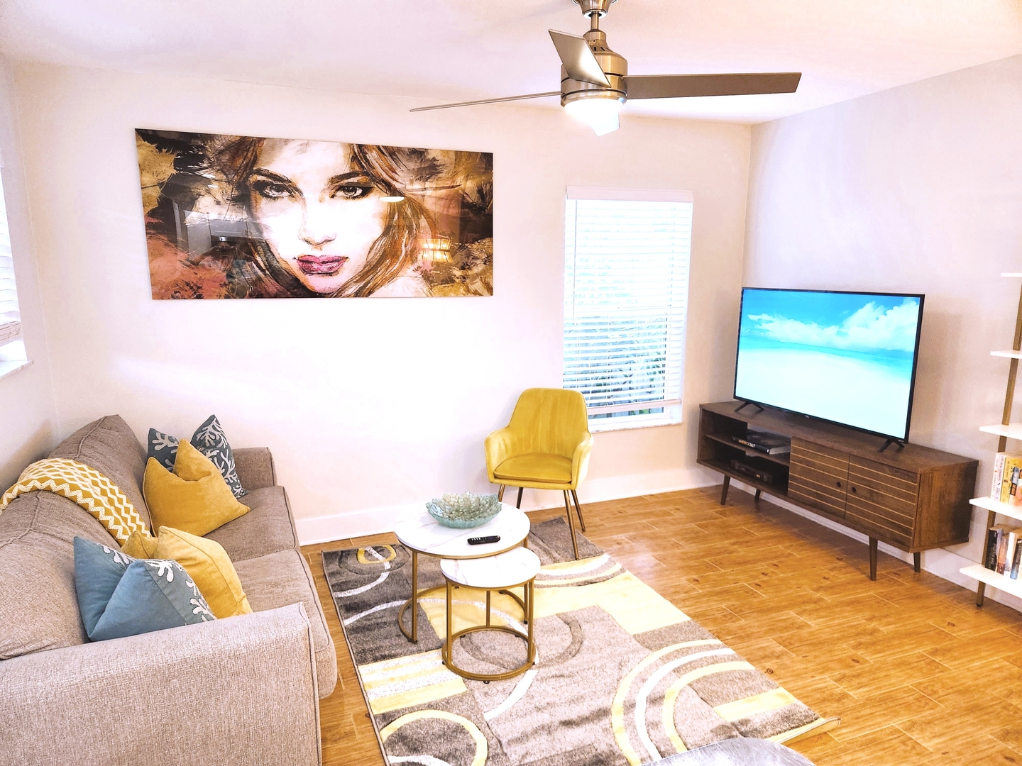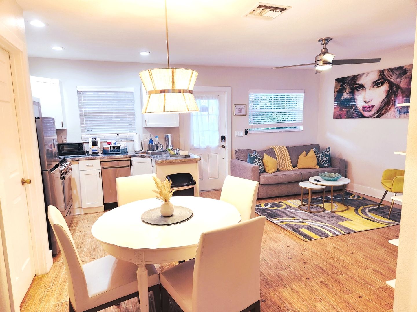 Why pay outrageous prices at crowded Florida beaches when you can enjoy the same sun and sand at our hidden gem? With a track record of happy guests, your beach getaway is not only fabulous but also a great value. Just 1.5 miles from the beach and steps from downtown cafes, music and parks. You'll LOVE floating in our pool and lounging in the courtyard. Minutes from golf, fishing, boating. Enjoy a king bed, Starbucks starter coffee, parking, and zero checkout chores. Book now!